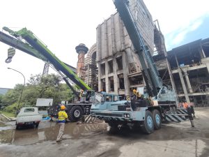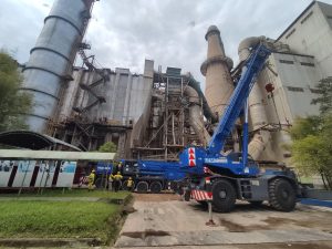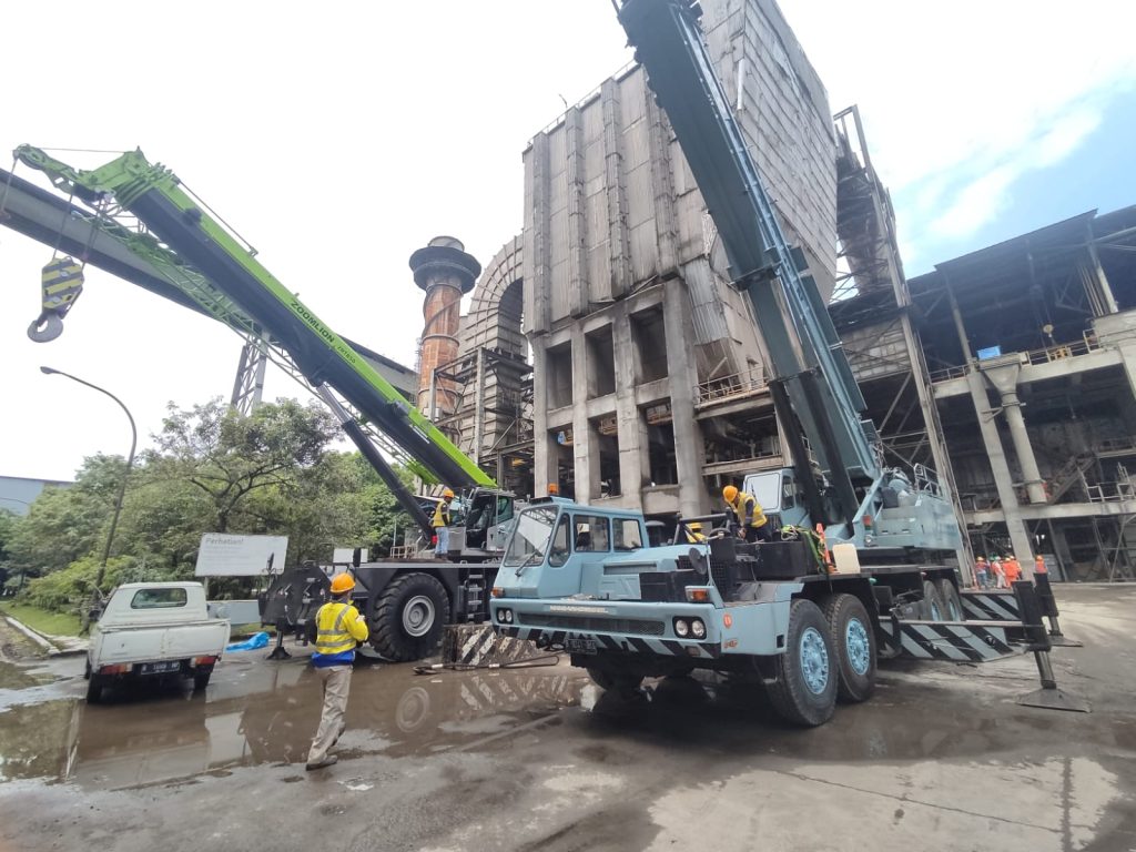 Proyek lifting motor screw dan colllecting plate berlokasi di Pabrik Semen PT SBI, Cilacap Jawa Tengah. PT TRISAKA berkontribusi sebagai penyedia alat berat untuk proyek tersebut